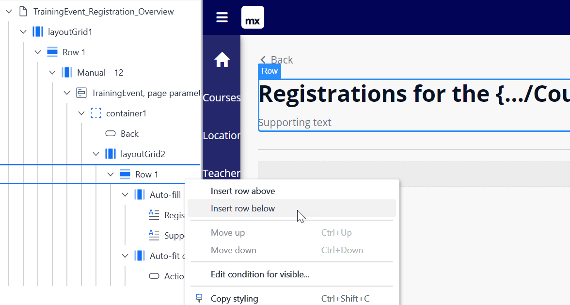 5. 빌딩 블록의 레이아웃 그리드에 새 full-width row 추가합니다. 이를 수행하는 몇 가지 방법이 있습니다.