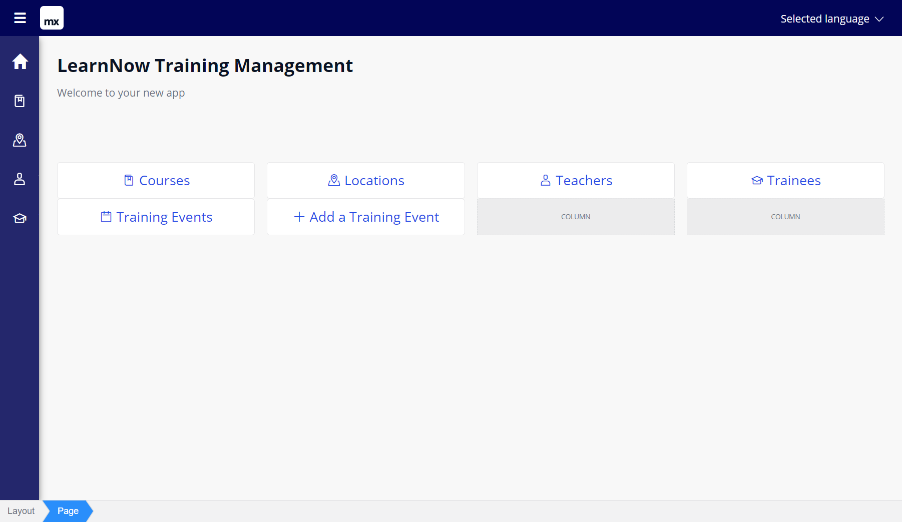 1. Training Event Overview 페이지의 헤더에서 새 열을 생성하고 콘텐츠 자동 맞춤으로 설정합니다.