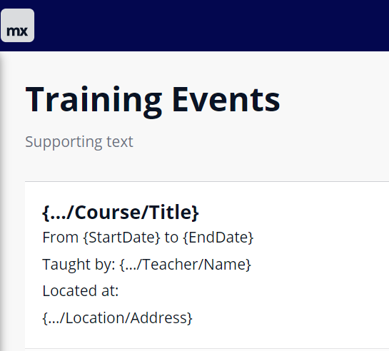 a. 첫 번째 목록 항목 제목을 두 번 클릭합니다. (위 이미지와 같이 {.../Course/Title}이 됩니다.)